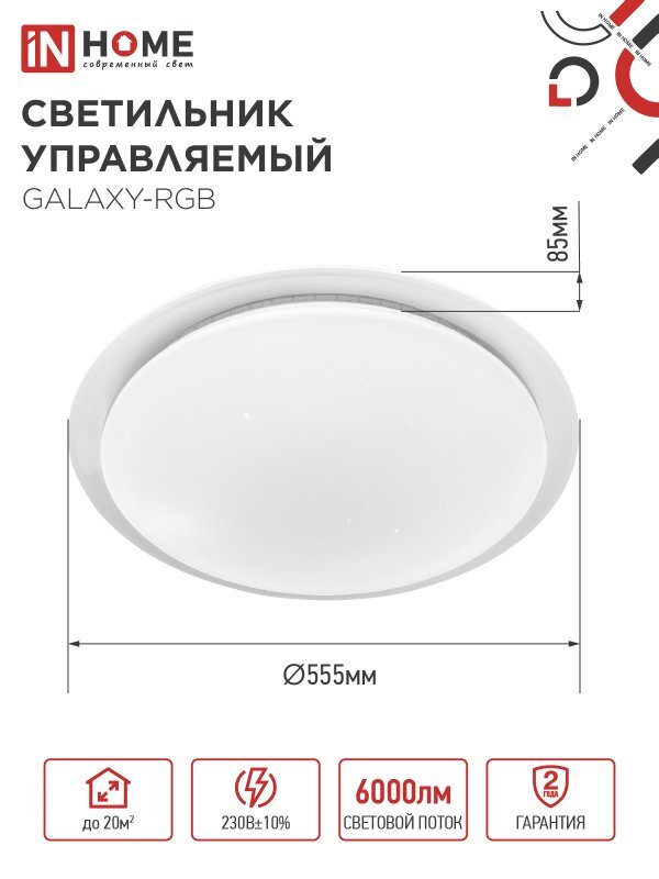 Светильник светодиодный COMFORT GALAXY-RGB 75Вт 3000-6500К 6000лм 230В 555х85мм с пультом ДУ IN HOME 4690612044613
