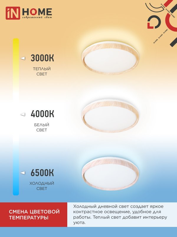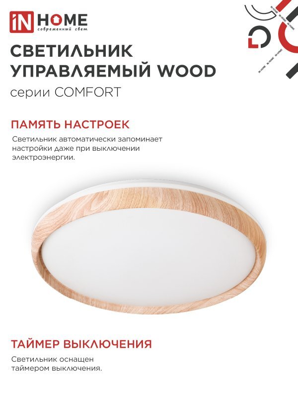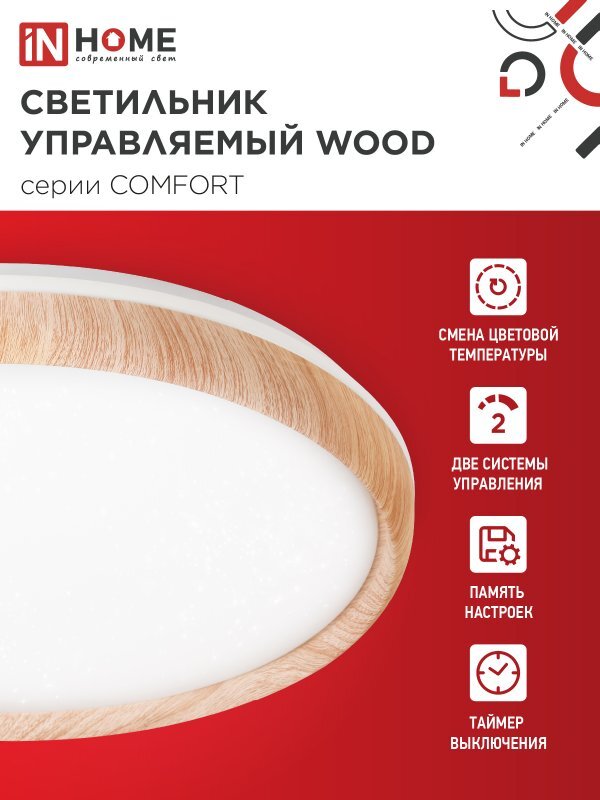 Светильник светодиодный COMFORT WOOD 75Вт 3000-6500К 6000лм 230В 490х90мм с пультом ДУ IN HOME 4690612035758