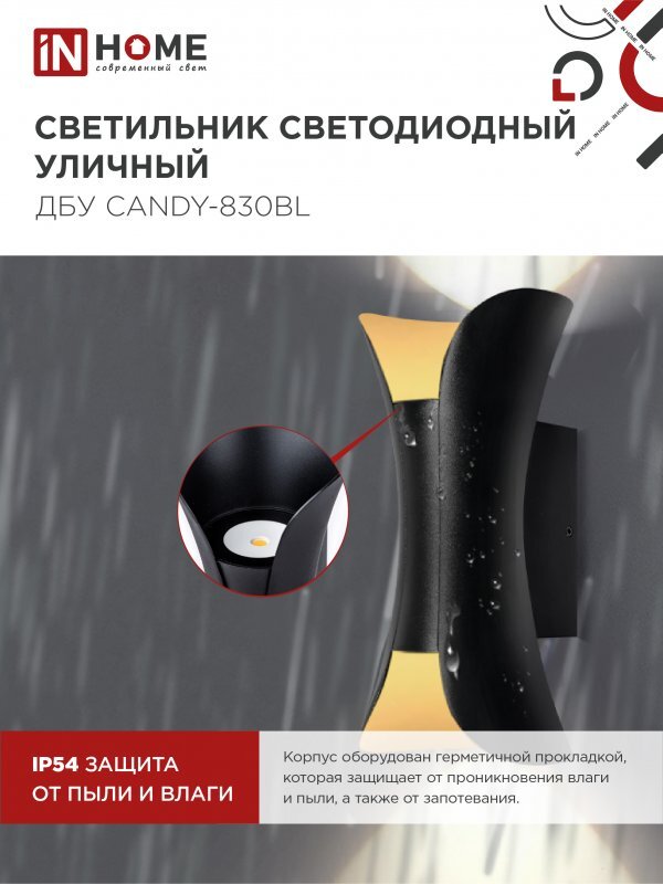Светильник светодиодный ДБУ CANDY-8В 8Вт 3000К IP65 уличный черн. IN HOME 4690612051895