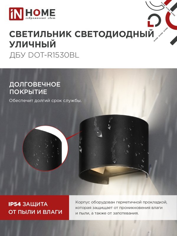 Светильник светодиодный ДБУ DOT-R15B 15Вт 3000К IP54 уличный черн. IN HOME 4690612053950