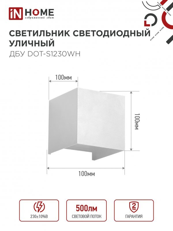 Светильник светодиодный ДБУ DOT-S12W 12Вт 3000К IP65 уличный квадратный бел. IN HOME 4690612055503