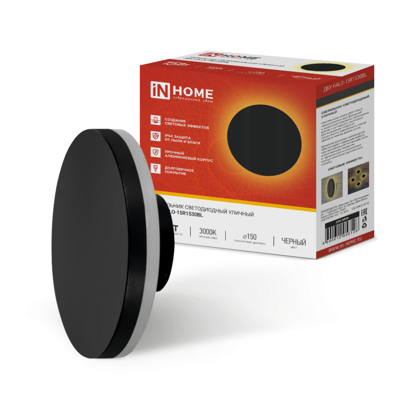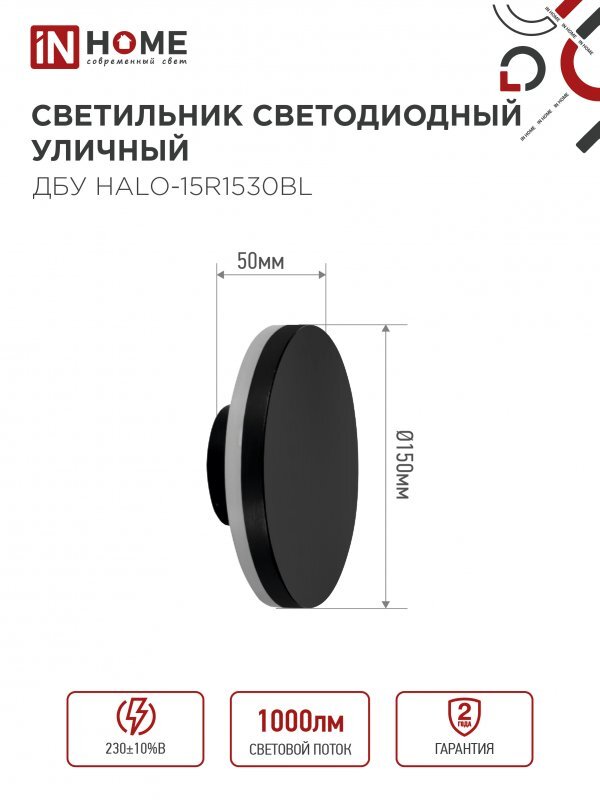 Светильник светодиодный ДБУ HALO-R1530BL 15Вт 3000К IP54 150х50мм уличный круглый черн. IN HOME 4690612056128