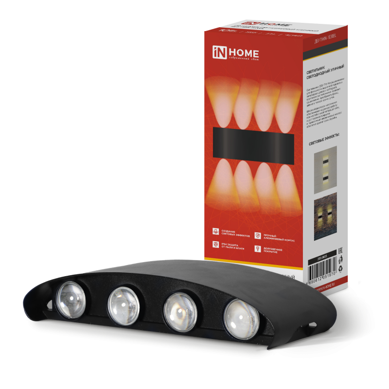 Светильник светодиодный ДБУ TWIN-10B 10Вт 3000К IP65 уличный черн. IN HOME 4690612051970