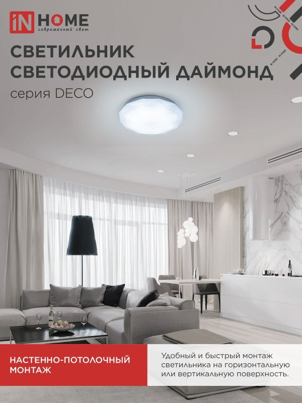 Светильник светодиодный DECO ДАЙМОНД 120Вт 6500К 12600лм 230В 496х85мм IN HOME 4690612062242