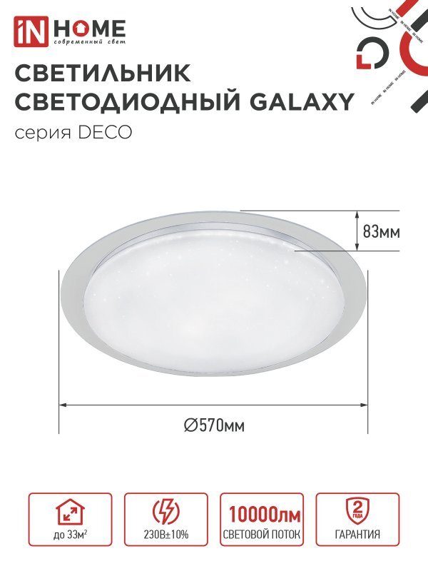 Светильник светодиодный DECO GALAXY 95Вт 6500К 10000лм 230В 570х83мм IN HOME 4690612058658