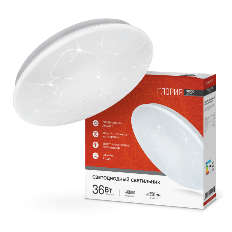 Светодиодный светильник ГЛОРИЯ серии DECO от ТМ In Home, изготовленный в белом цвете с простыми чистыми линиями, станет удачным решением лаконичных интерьеров. Линейка светильников ГЛОРИЯ представлена в трех размерах от 190 до 350 мм. Несколько вариаций мощности (в диапазоне от 12 Вт до 36 Вт) позволяют подобрать оптимальный осветительный прибор в зависимости от конфигурации и габаритов помещения. Применение Светодиодные светильники ГЛОРИЯ серии DECO предназначены для внутреннего освещения жилых помещений, подъездов и сферы ЖКХ, офисных и административных учреждений, магазинов, а также холлов, коридоров, лестничных пролётов, подсобок и других помещений вспомогательного назначения. Преимущества Современные светильники серии DECO, работающие на основе последнего поколения светодиодов, обеспечивают яркий равномерный световой поток при максимальной экономии электроэнергии. Отсутствие пульсации гарантирует сохранность здоровья глаз. Светодиодные светильники являются одним из самых экологически безвредных источников света и не требуют специальной утилизации и переработки. Светильники получили сертификат таможенного союза EAC. Производятся по ГОСТу Р МЭК 60598-1-2011. Монтаж Светодиодные светильники серии DECO применяются для работы в сетях переменного тока напряжением 230В ± 10% с частотой 50 герц. Перед установкой следует убедиться в правильности напряжения питающей сети и наличии защитного устройства в цепи (автоматический выключатель, предохранитель). Этапы установки: отключите сетевое напряжение, извлеките светильник из упаковки, открутите плафон светильника, повернув его по часовой стрелке. Через клеммную колодку подключите подготовленные концы проводов осветительного прибора к проводу сети. Установите светильник на поверхности и зафиксируйте при помощи дюбелей и саморезов. Сборку светильника следует осуществлять в обратной последовательности.