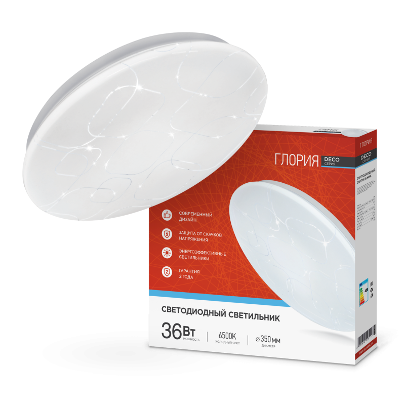 Светодиодный светильник ГЛОРИЯ серии DECO от ТМ In Home, изготовленный в белом цвете с простыми чистыми линиями, станет удачным решением лаконичных интерьеров. Линейка светильников ГЛОРИЯ представлена в трех размерах от 190 до 350 мм. Несколько вариаций мощности (в диапазоне от 12 Вт до 36 Вт) позволяют подобрать оптимальный осветительный прибор в зависимости от конфигурации и габаритов помещения. Применение Светодиодные светильники ГЛОРИЯ серии DECO предназначены для внутреннего освещения жилых помещений, подъездов и сферы ЖКХ, офисных и административных учреждений, магазинов, а также холлов, коридоров, лестничных пролётов, подсобок и других помещений вспомогательного назначения. Преимущества Современные светильники серии DECO, работающие на основе последнего поколения светодиодов, обеспечивают яркий равномерный световой поток при максимальной экономии электроэнергии. Отсутствие пульсации гарантирует сохранность здоровья глаз. Светодиодные светильники являются одним из самых экологически безвредных источников света и не требуют специальной утилизации и переработки. Светильники получили сертификат таможенного союза EAC. Производятся по ГОСТу Р МЭК 60598-1-2011. Монтаж Светодиодные светильники серии DECO применяются для работы в сетях переменного тока напряжением 230В ± 10% с частотой 50 герц. Перед установкой следует убедиться в правильности напряжения питающей сети и наличии защитного устройства в цепи (автоматический выключатель, предохранитель). Этапы установки: отключите сетевое напряжение, извлеките светильник из упаковки, открутите плафон светильника, повернув его по часовой стрелке. Через клеммную колодку подключите подготовленные концы проводов осветительного прибора к проводу сети. Установите светильник на поверхности и зафиксируйте при помощи дюбелей и саморезов. Сборку светильника следует осуществлять в обратной последовательности. Стандартная площадь освещения - 15 кв.м