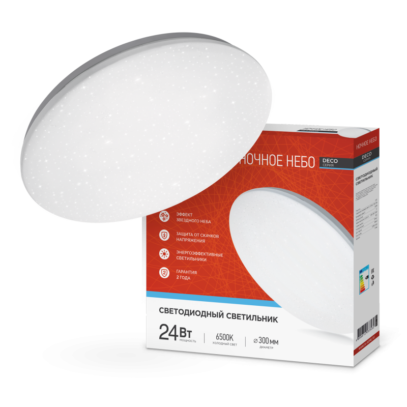 Лаконичность форм и простота линий светильника НОЧНОЕ НЕБО ТМ IN-HOME с эффектом «звездного неба» на поверхности рассеивателя понравятся любителям классических и современных интерьеров. Линейка светильников НОЧНОЕ НЕБО представлена в диапазоне мощностей от 12 Вт до 48 Вт, что позволяют подобрать оптимальный осветительный прибор, в зависимости от конфигурации и габаритов помещения. Светодиодные светильники НОЧНОЕ НЕБО серии DECO подойдут для освещения домашних интерьеров, отелей, офисных и административных зданий, торговых залов, сферы ЖКХ и др., а также холлов, коридоров, лестничных пролётов, подсобок и других помещений вспомогательного назначения. Современные светильники серии DECO, работающие на основе последнего поколения светодиодов, обеспечивают яркий равномерный световой поток при максимальной экономии электроэнергии. Отсутствие пульсации гарантирует сохранность здоровья глаз. Светодиодные светильники являются одним из самых экологически безвредных источников света и не требуют специальной утилизации и переработки. Светильники получили сертификат таможенного союза EAC.