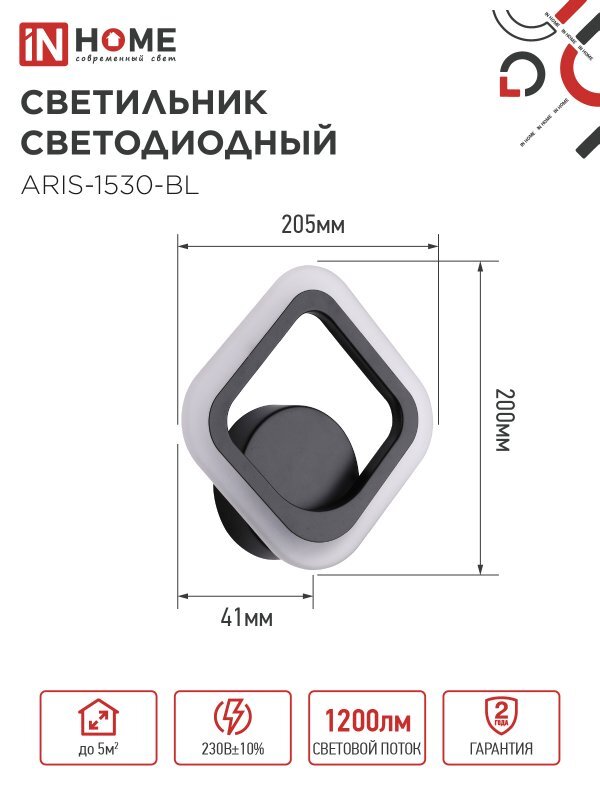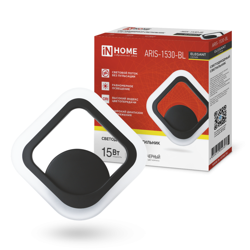 Светильник светодиодный ELEGANT ARIS-1530-BL 15Вт 3000К 1200лм 230В черн. IN HOME 4690612054391