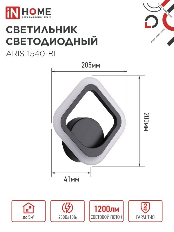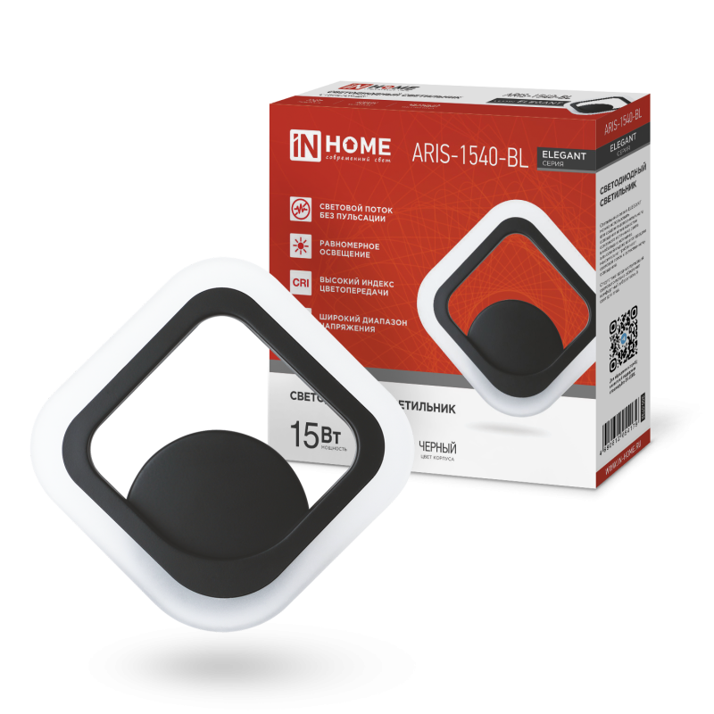 Светильник светодиодный ELEGANT ARIS-1540-BL 15Вт 4000К 1200лм 230В черн. IN HOME 4690612054179