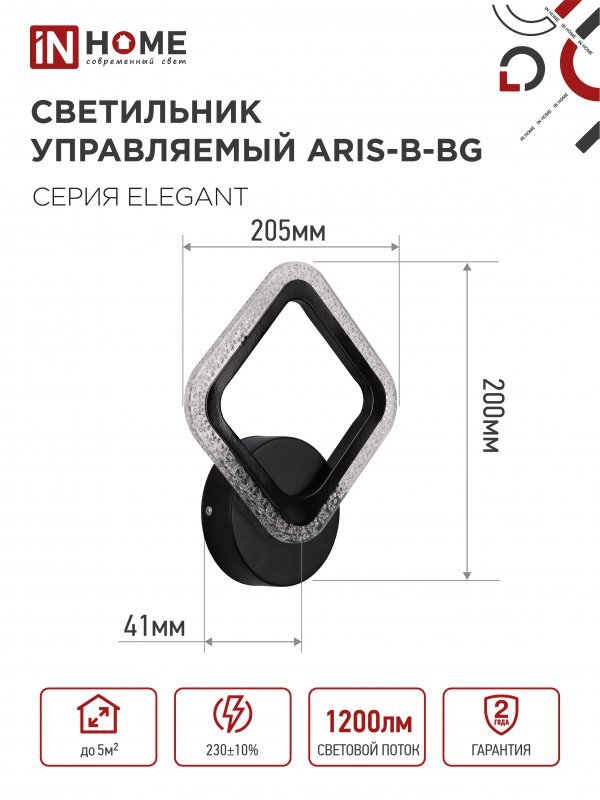 Светильник светодиодный ELEGANT ARIS-B-BG 15Вт 3000-6500К 1050лм 230В STEP COLOR черн. IN HOME 4690612043128