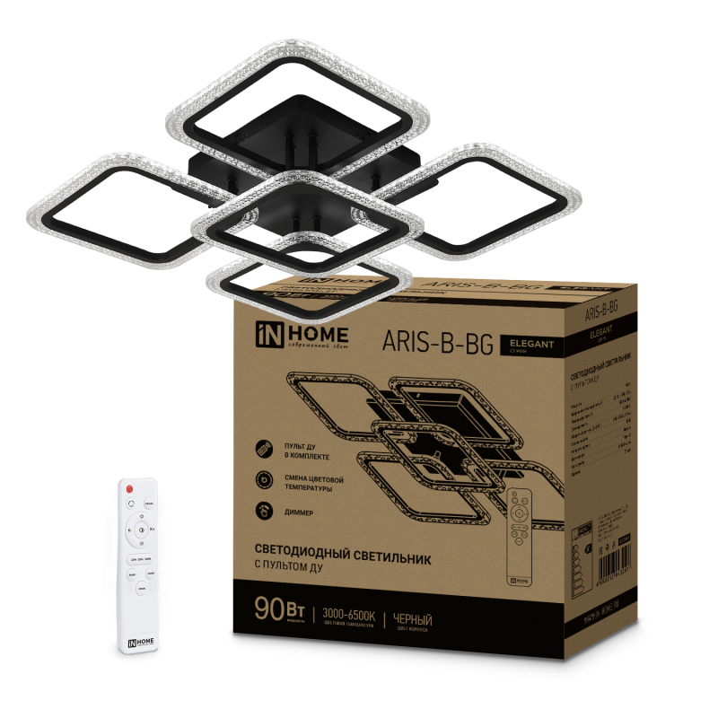 Светильник светодиодный ELEGANT ARIS-B-BG 90Вт 3000-4000-6500К 7000лм 230В 600х600х110мм ПУ черн. IN HOME 4690612043241