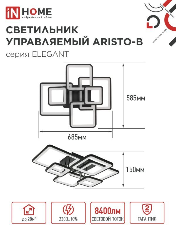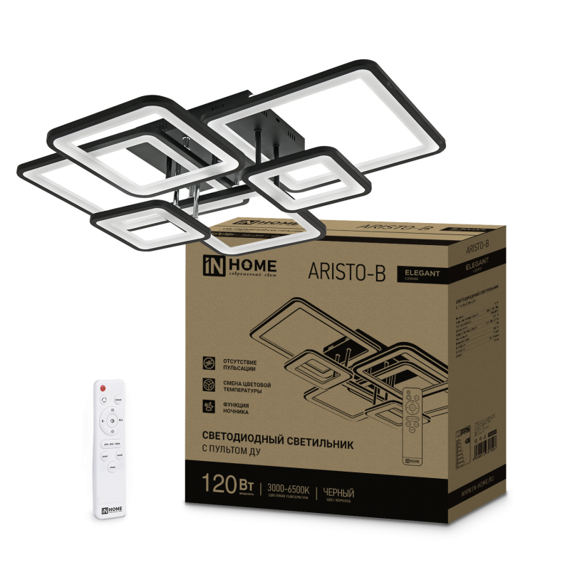 Светильник светодиодный ELEGANT ARISTO-B 120Вт 3000-6500К 8400лм 230В 686х587х151мм пульт ДУ черн. IN HOME 4690612047324