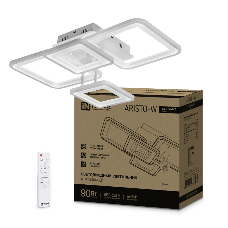 Светильник светодиодный ELEGANT ARISTO-W 90Вт 3000-6500К 7000лм 230В 535х370х151мм пульт ДУ бел. IN HOME 4690612047300