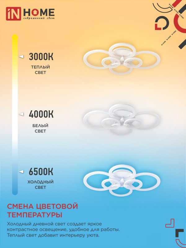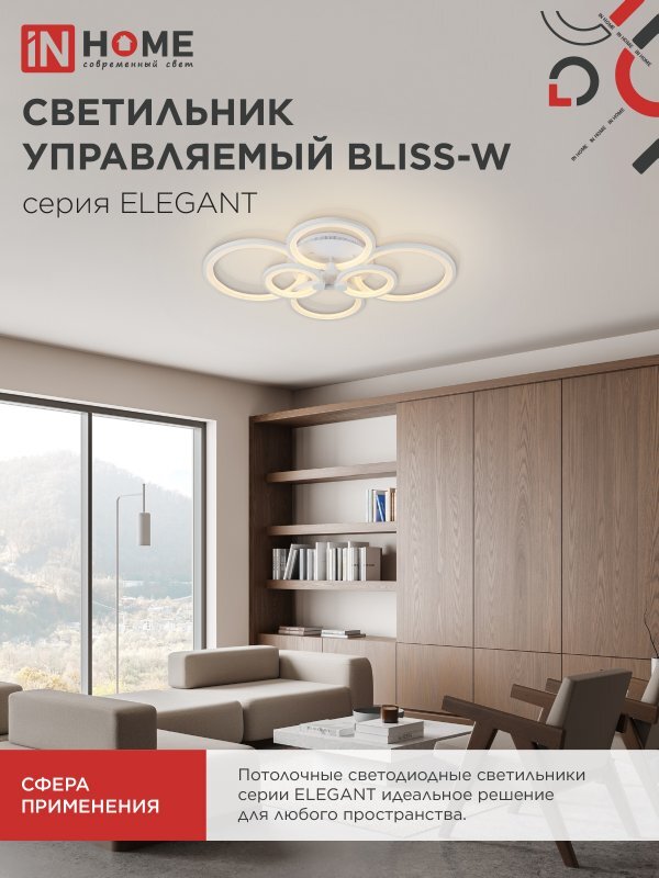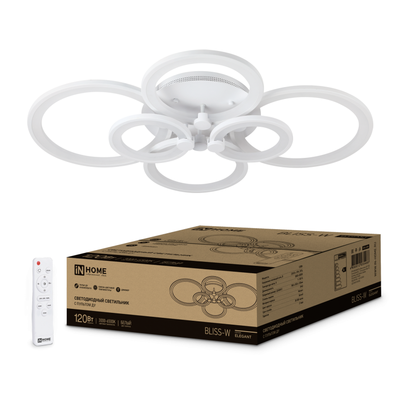 Светильник светодиодный ELEGANT BLISS-120W 120Вт 3000-4000-6500К 8400лм 230В 780х550х130мм с пультом ДУ IN HOME 4690612035468