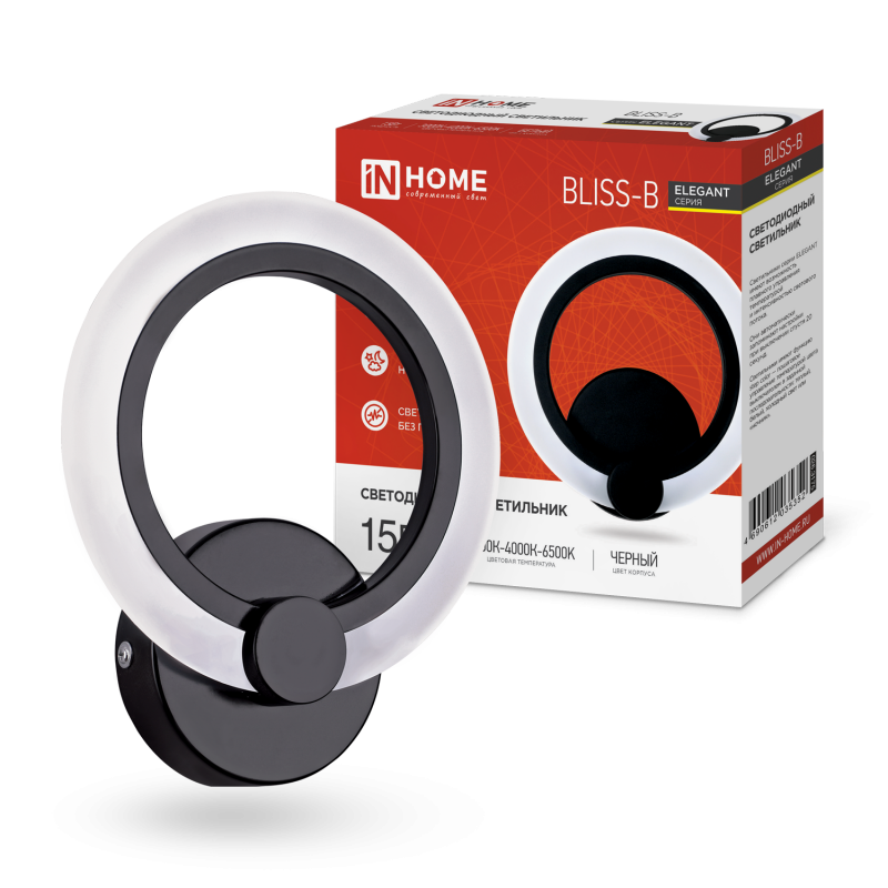 Светильник светодиодный ELEGANT BLISS-15B 15Вт 3000-6500К 1200лм 230В STEP COLOR черн. IN HOME 4690612035352