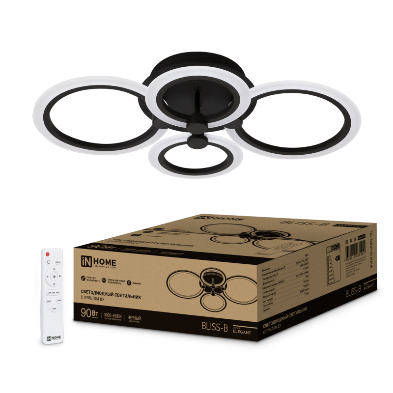 Светильник светодиодный ELEGANT BLISS-90В 90Вт 3000-4000-6500К 7000лм 230В 610х400х130мм с пультом ДУ IN HOME 4690612035451