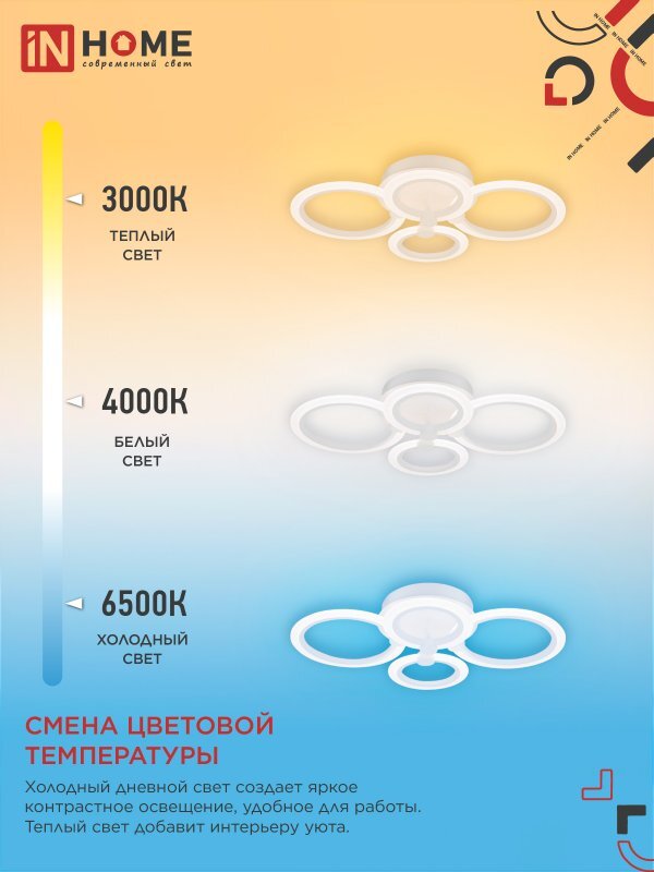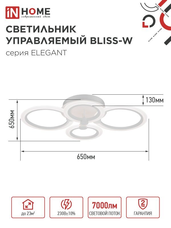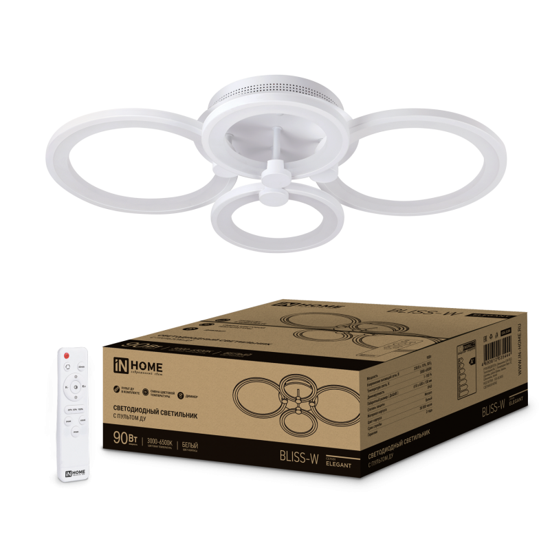 Светильник светодиодный ELEGANT BLISS-90W 90Вт 3000-4000-6500К 7000лм 230В 610х400х130мм с пультом ДУ IN HOME 4690612035444