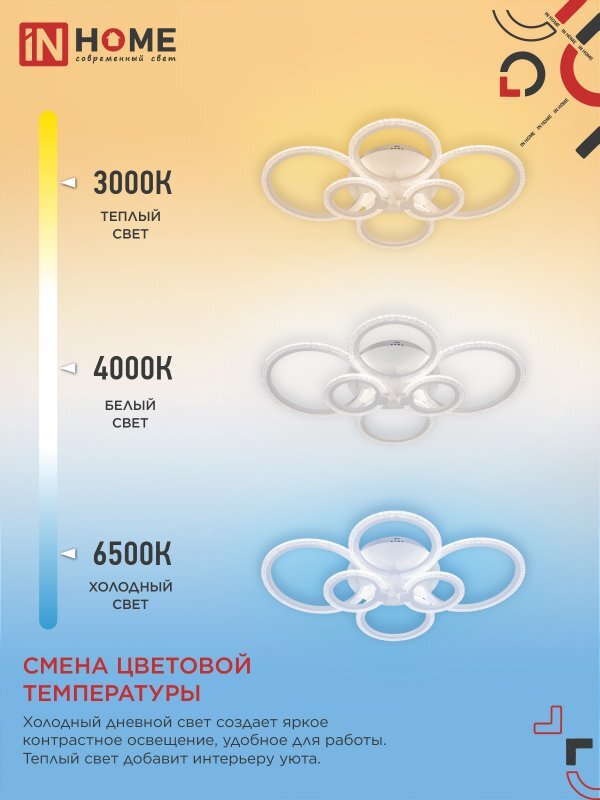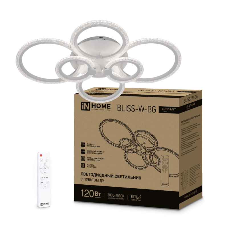 Светильник светодиодный ELEGANT BLISS-W-BG 120Вт 3000-6500К 8400лм 230В 780х550х130мм с пультом ДУ бел. IN HOME 4690612051840