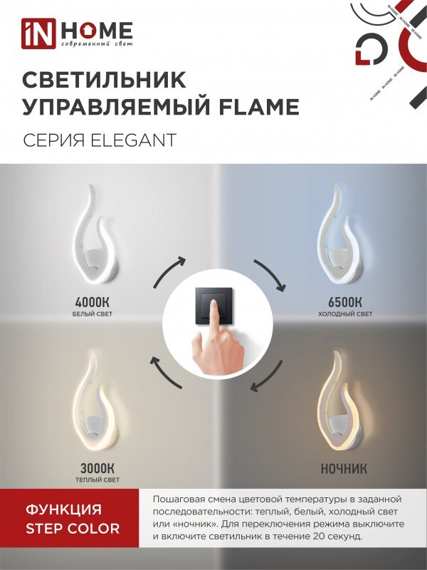 Светильник светодиодный ELEGANT FLAME 15Вт 3000-6500К 1200лм 230В STEP COLOR бел. IN HOME 4690612051437