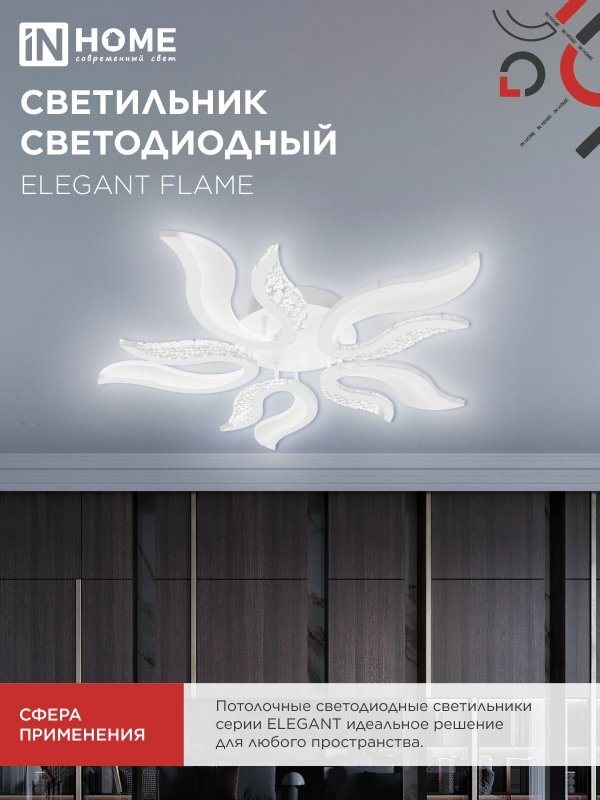 Светильник светодиодный ELEGANT FLAME 90Вт 3000-6500К 7000лм 230В 820х802х87мм с пультом ДУ бел. IN HOME 4690612051536