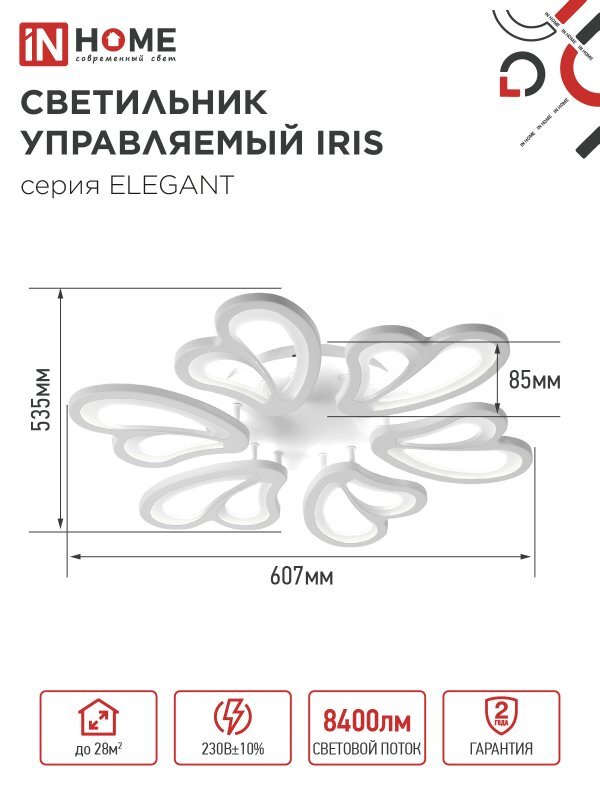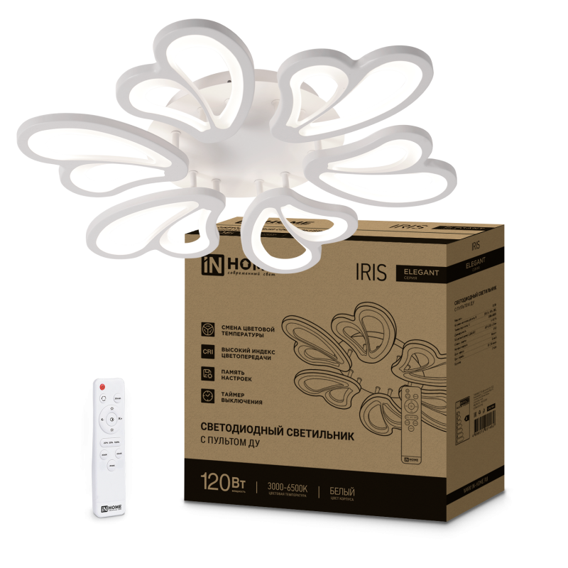 Светильник светодиодный ELEGANT IRIS 120Вт 3000-6500К 8400лм 230В 607х535х85мм с пультом ДУ бел. IN HOME 4690612051482