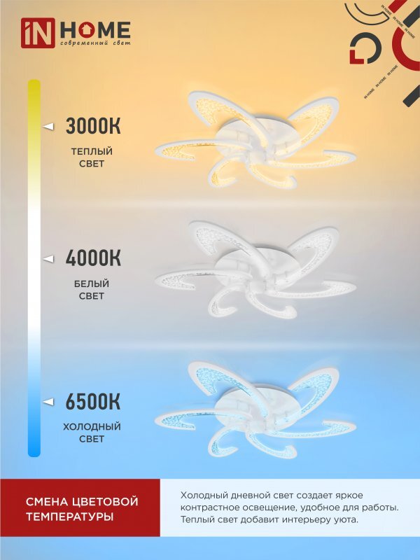 Светильник светодиодный ELEGANT ORBIT 90Вт 3000-6500К 7000лм 230В 725х635х90мм с пультом ДУ бел. IN HOME 4690612051567