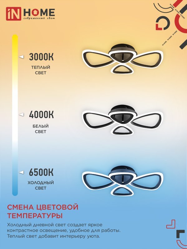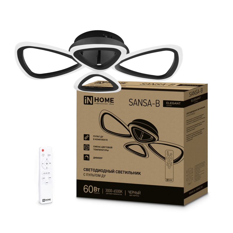 Светильник светодиодный ELEGANT SANSA-B 60Вт 3000-6500К 4700лм 230В 600х400х75мм с пультом ДУ черн. IN HOME 4690612043333