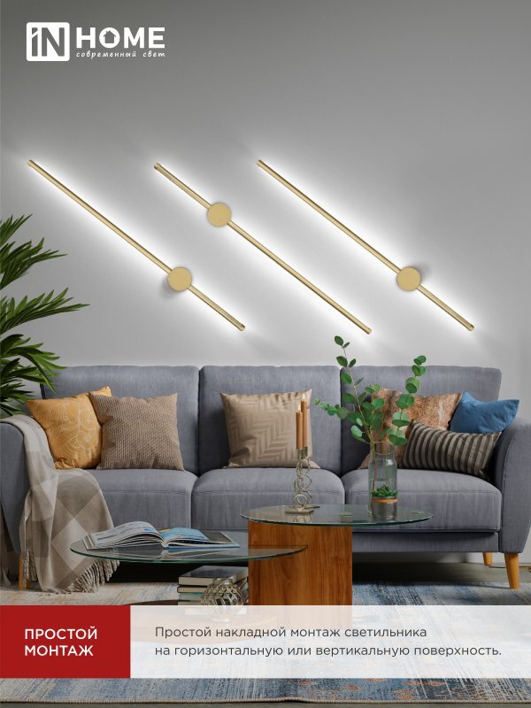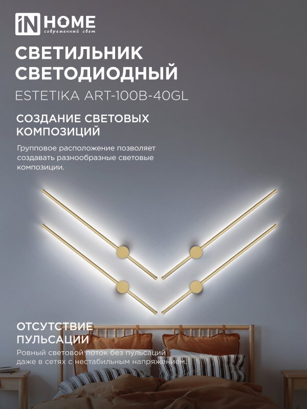 Светильник светодиодный ESTETIKA ART-100B-40GL 20Вт 4000К 1400лм 230В 1000х60х98 зол. IN HOME 4690612057828