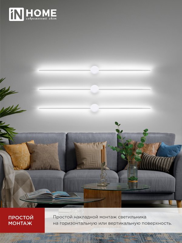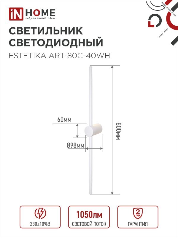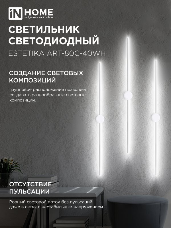 Светильник светодиодный ESTETIKA ART-80C-40WH 15Вт 4000К 1050лм 230В 800х60х98 бел. IN HOME 4690612057903