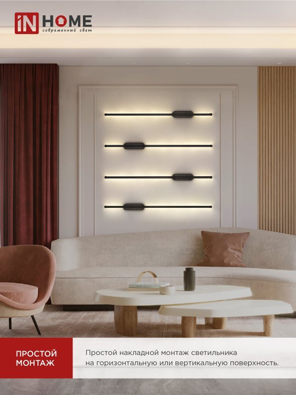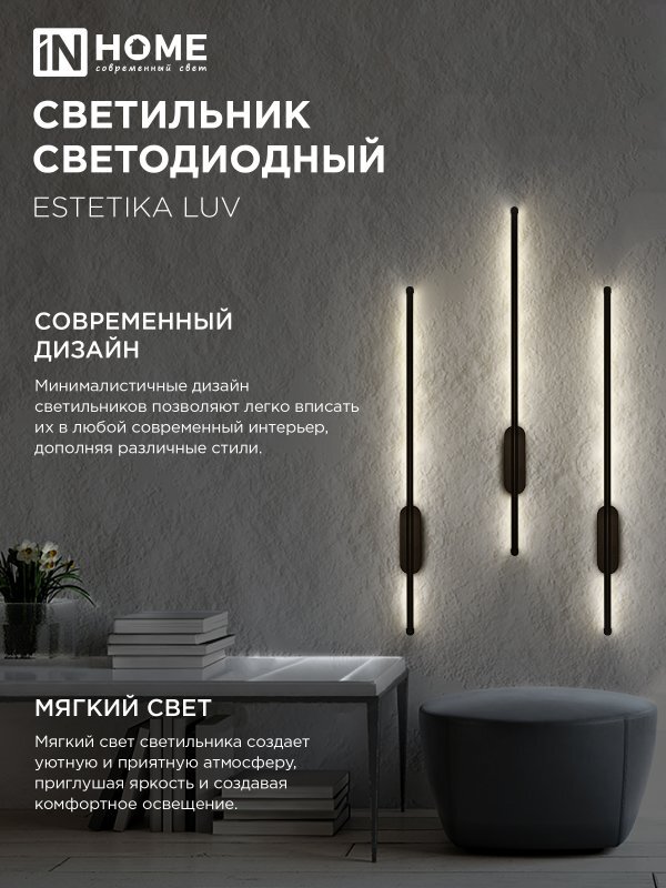 Светильник светодиодный ESTETIKA LUV-80B-30BL 15Вт 3000К 1050лм 230В 800х50х25 черн. IN HOME 4690612054414