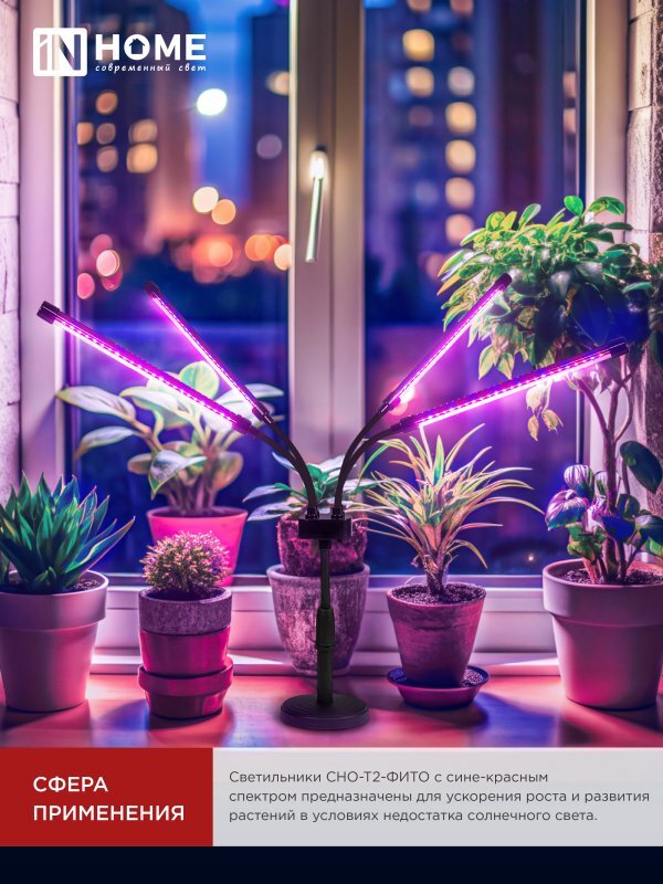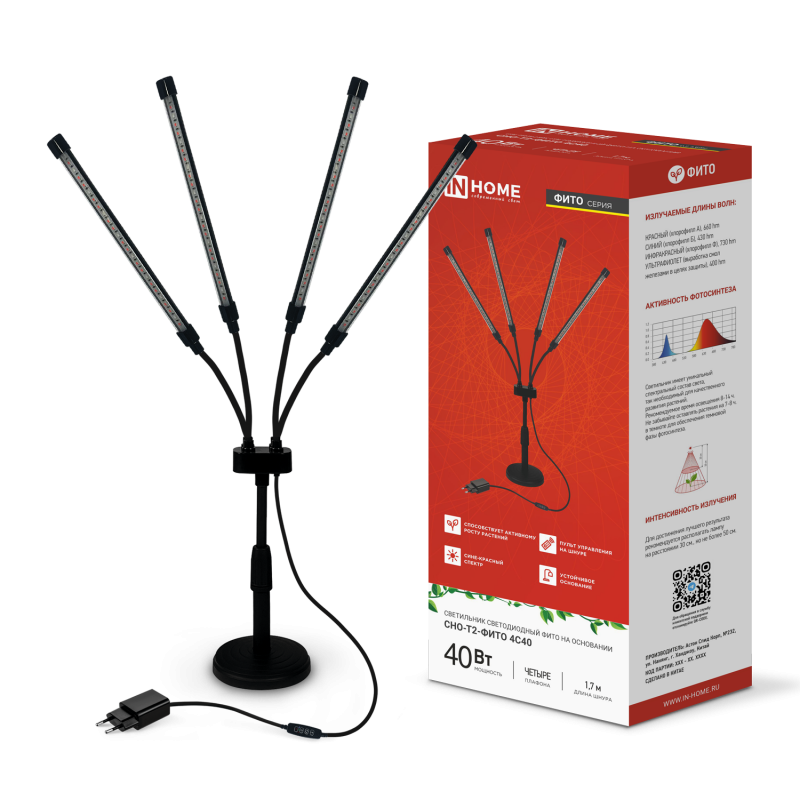 Светильник светодиодный настольный СНО-Т2-ФИТО 4С40 40Вт 4 плафона на основании пульт на шнуре черн. IN HOME 4690612053561