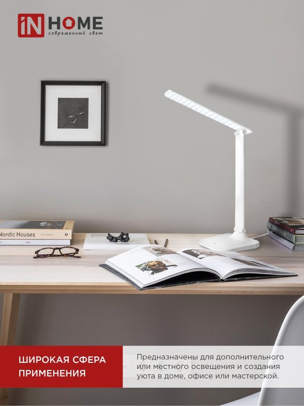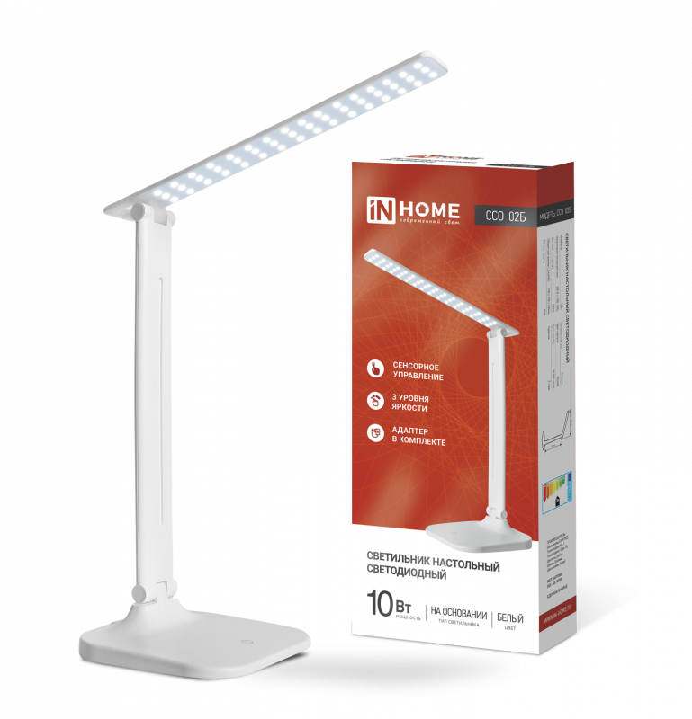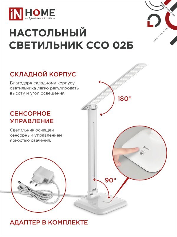 Светильник светодиодный настольный ССО 02Б 10Вт 4000К 625лм сенсор-диммер адаптер бел. IN HOME 4690612013473
