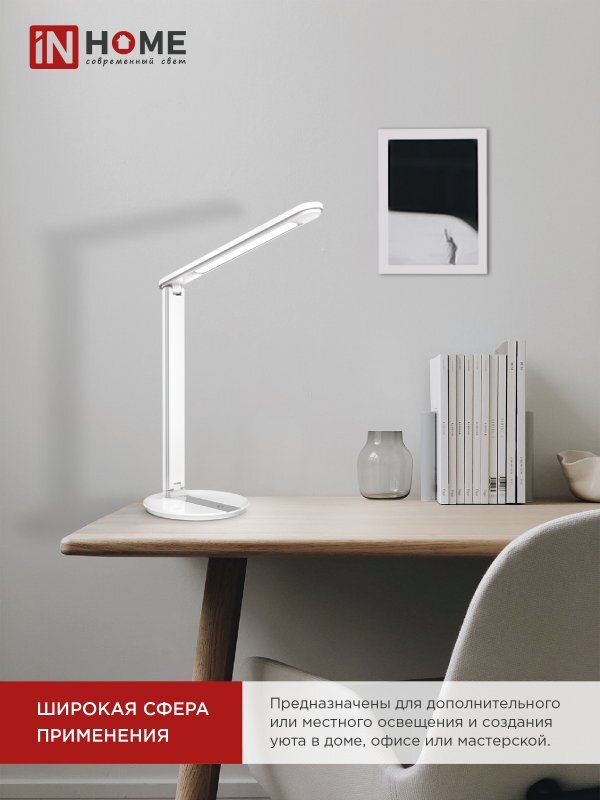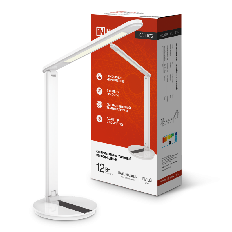 Светильник светодиодный настольный ССО 07Б 12Вт 3000-6500К 600лм сенсор-диммер с адаптером бел. IN HOME 4690612036533