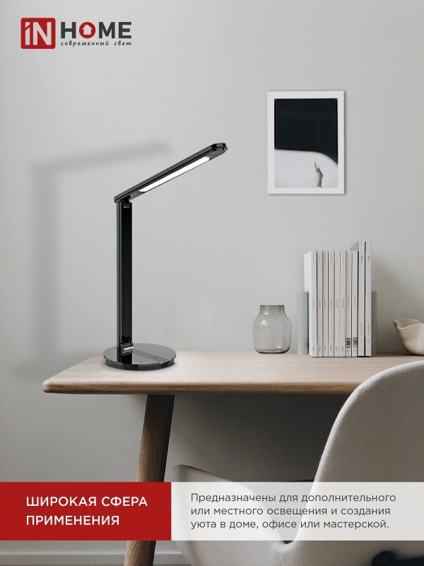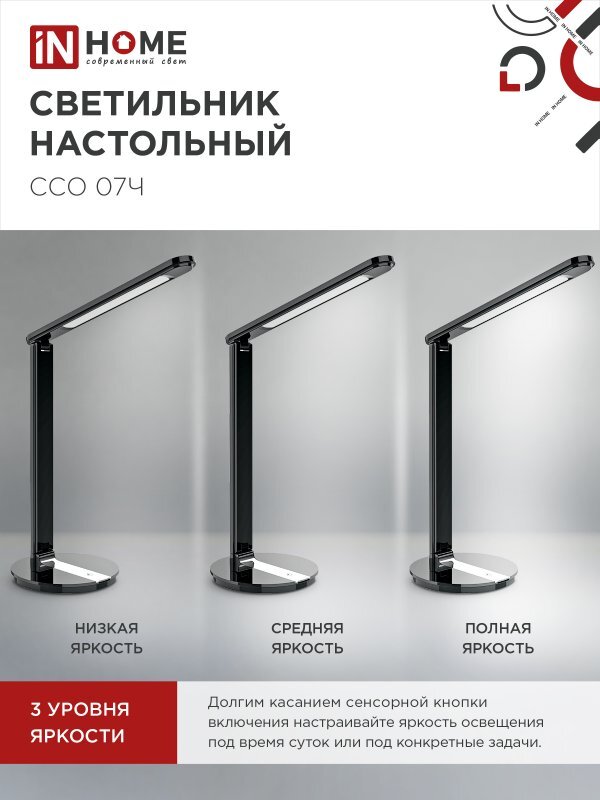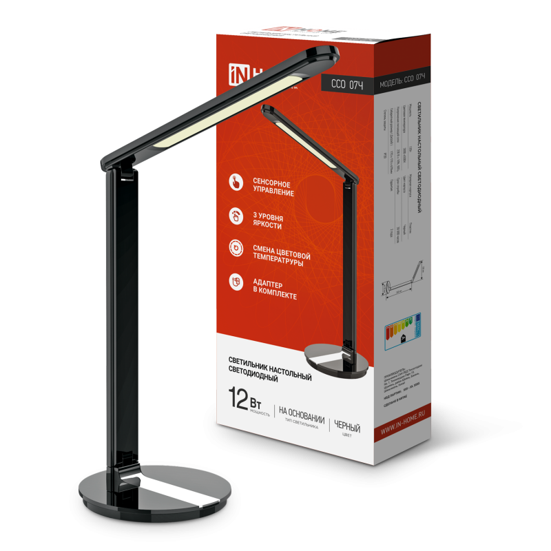 Светильник светодиодный настольный ССО 07Ч 12Вт 3000-6500К 600лм сенсор-диммер с адаптером черн. IN HOME 4690612036540