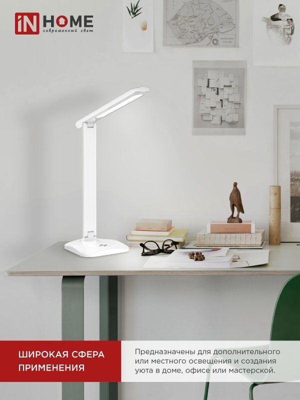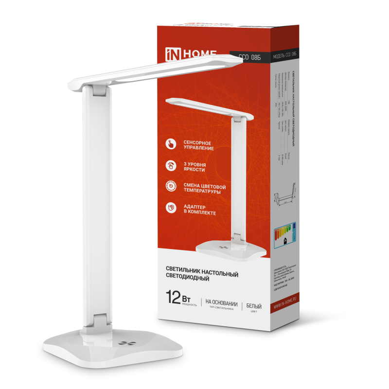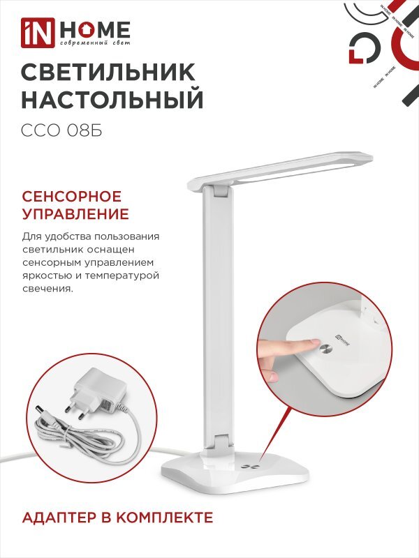 Светильник светодиодный настольный ССО 08Б 12Вт 3000-6500К 600лм сенсор-диммер с адаптером бел. IN HOME 4690612036557
