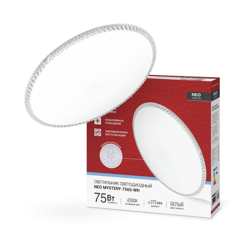 Светильник светодиодный NEO MYSTERY-7565-WH 75Вт 6500К 6000лм 230В 375х58мм бел. IN HOME 4690612062556
