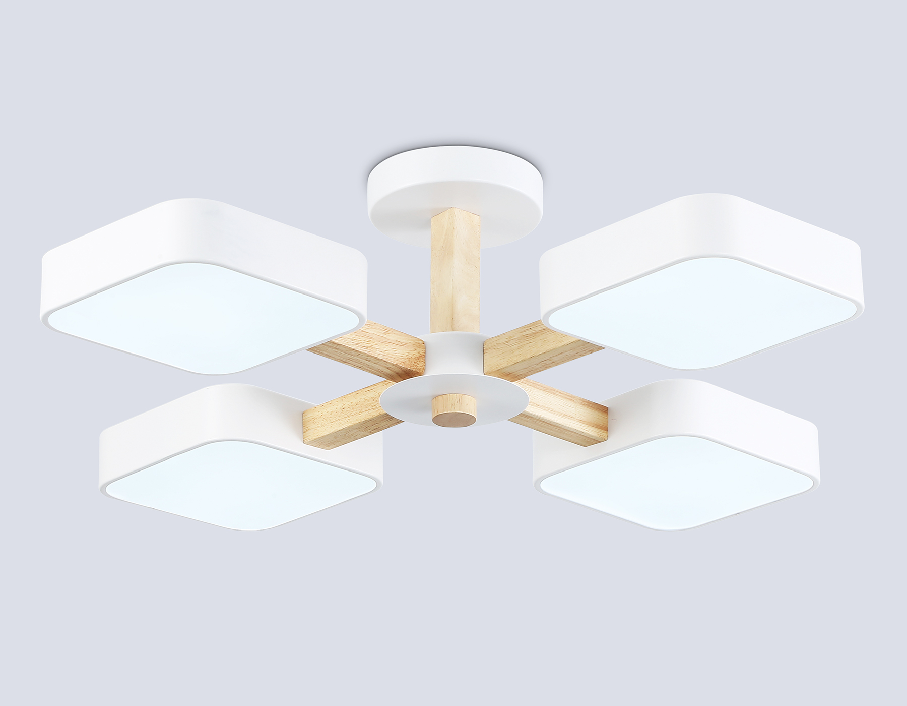 Светильник светодиодный подвесной FL4879/4 WH/WD белый/дерево 24W 3000-6000K D610*160 (без ПДУ)