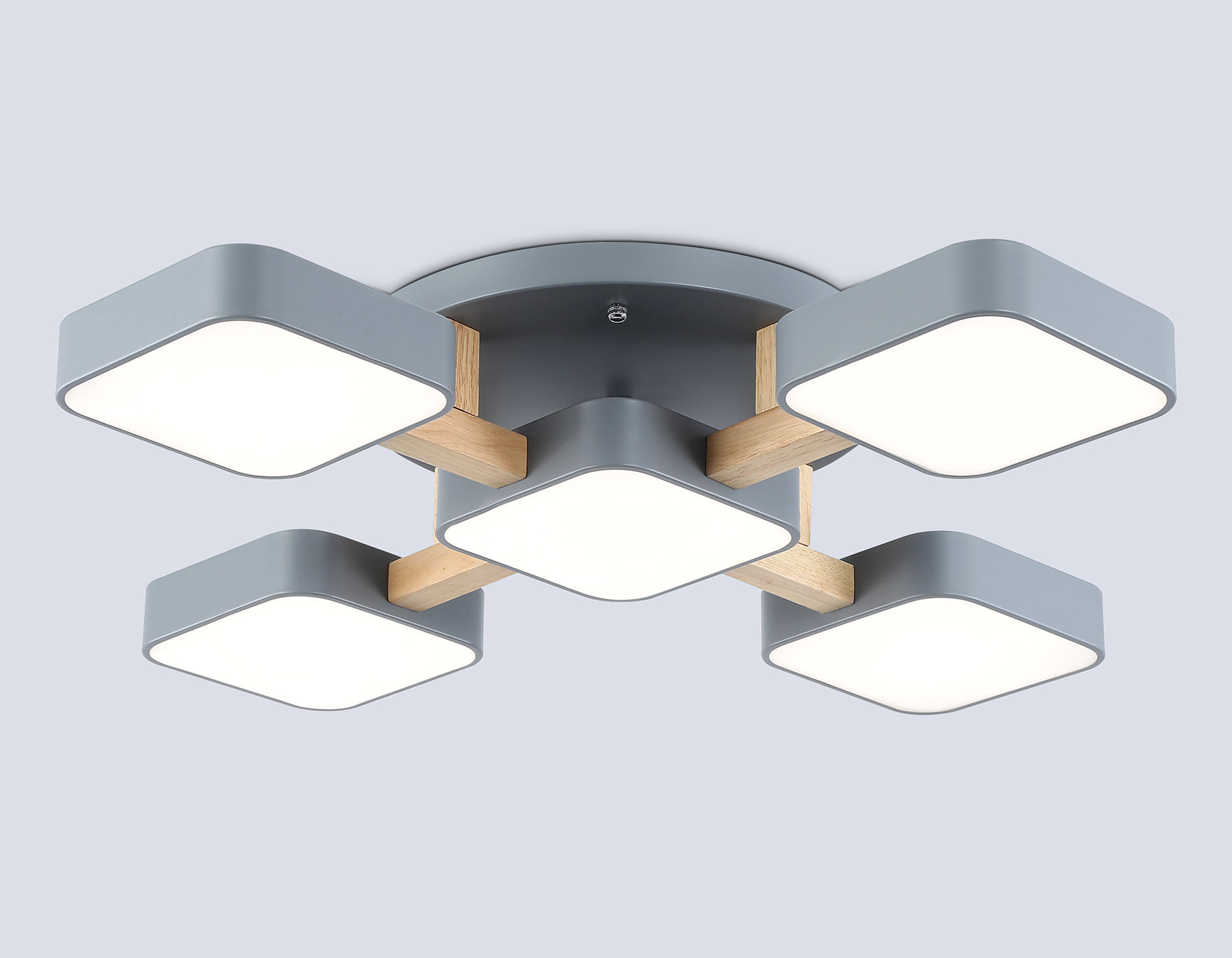 Светильник светодиодный подвесной FL4882/5 GR/WD серый/дерево 90W 3000-6000K 675*675*110 (без ПДУ)