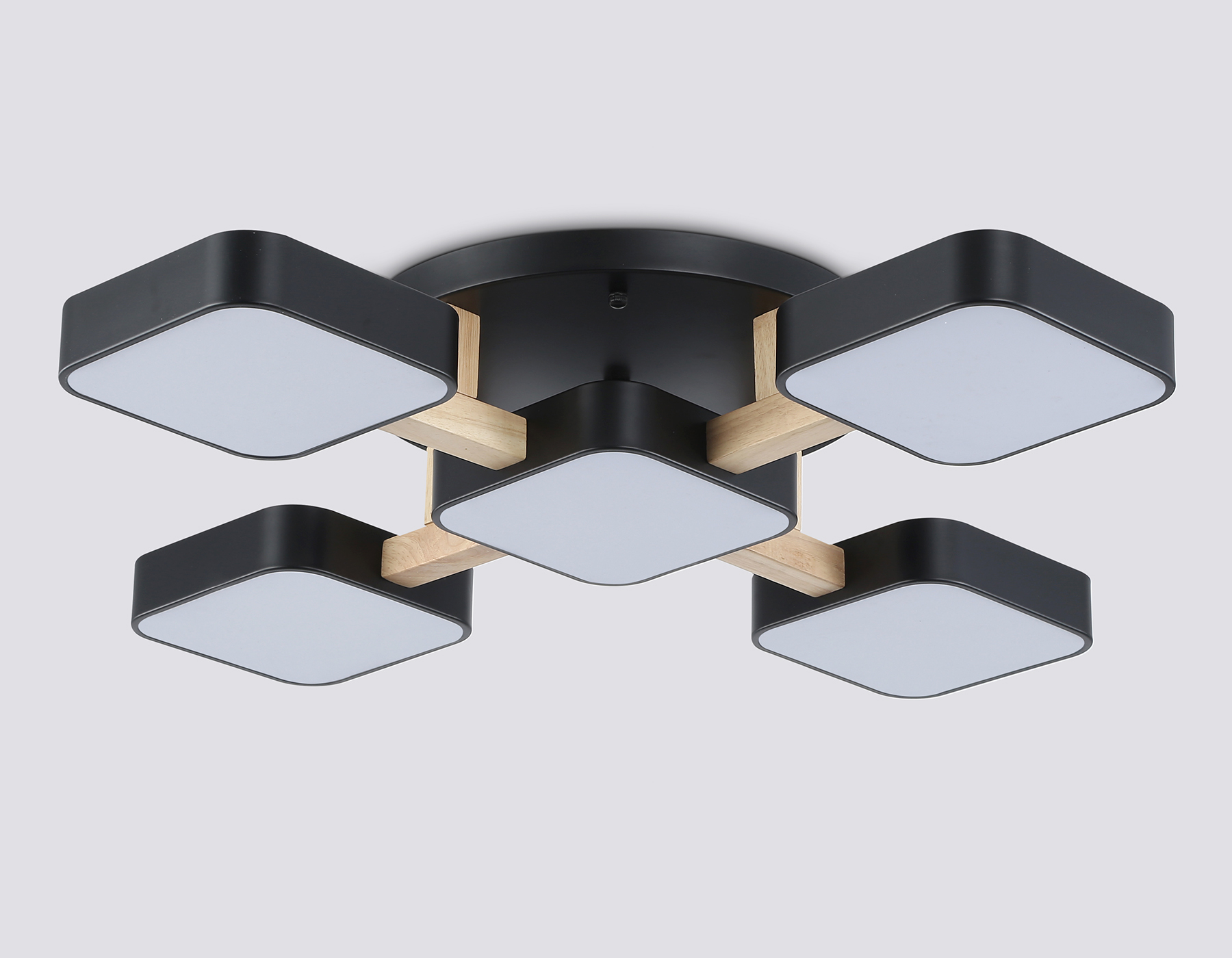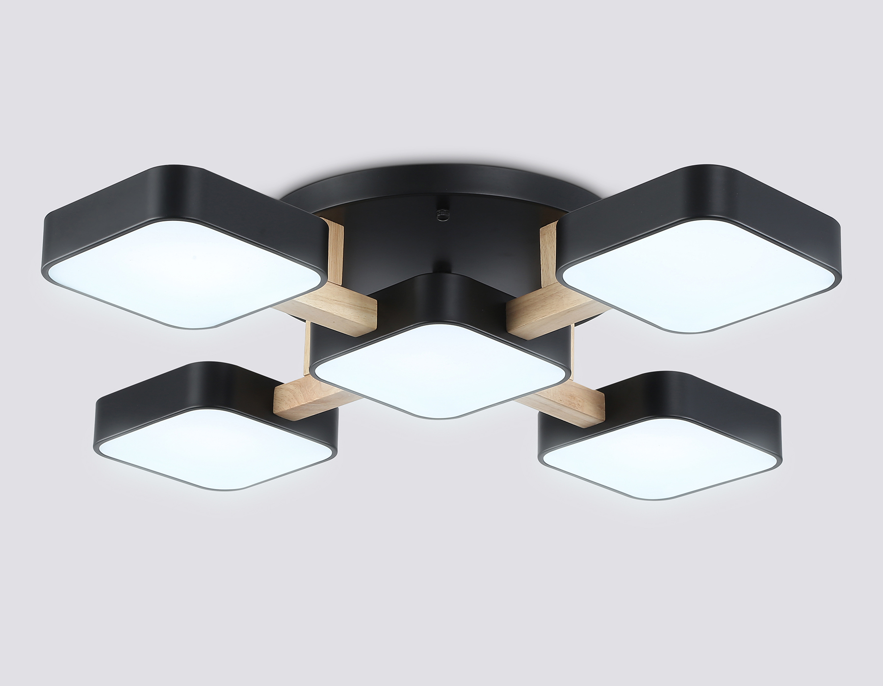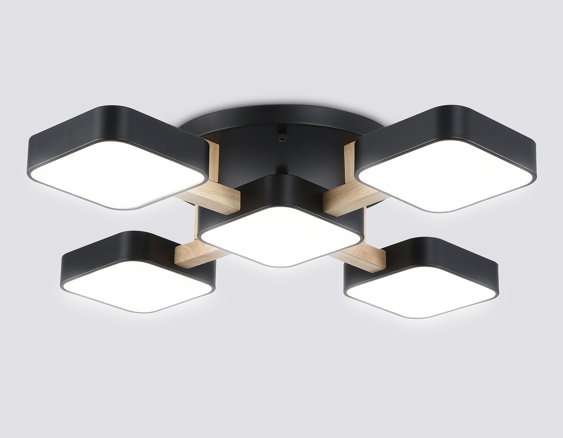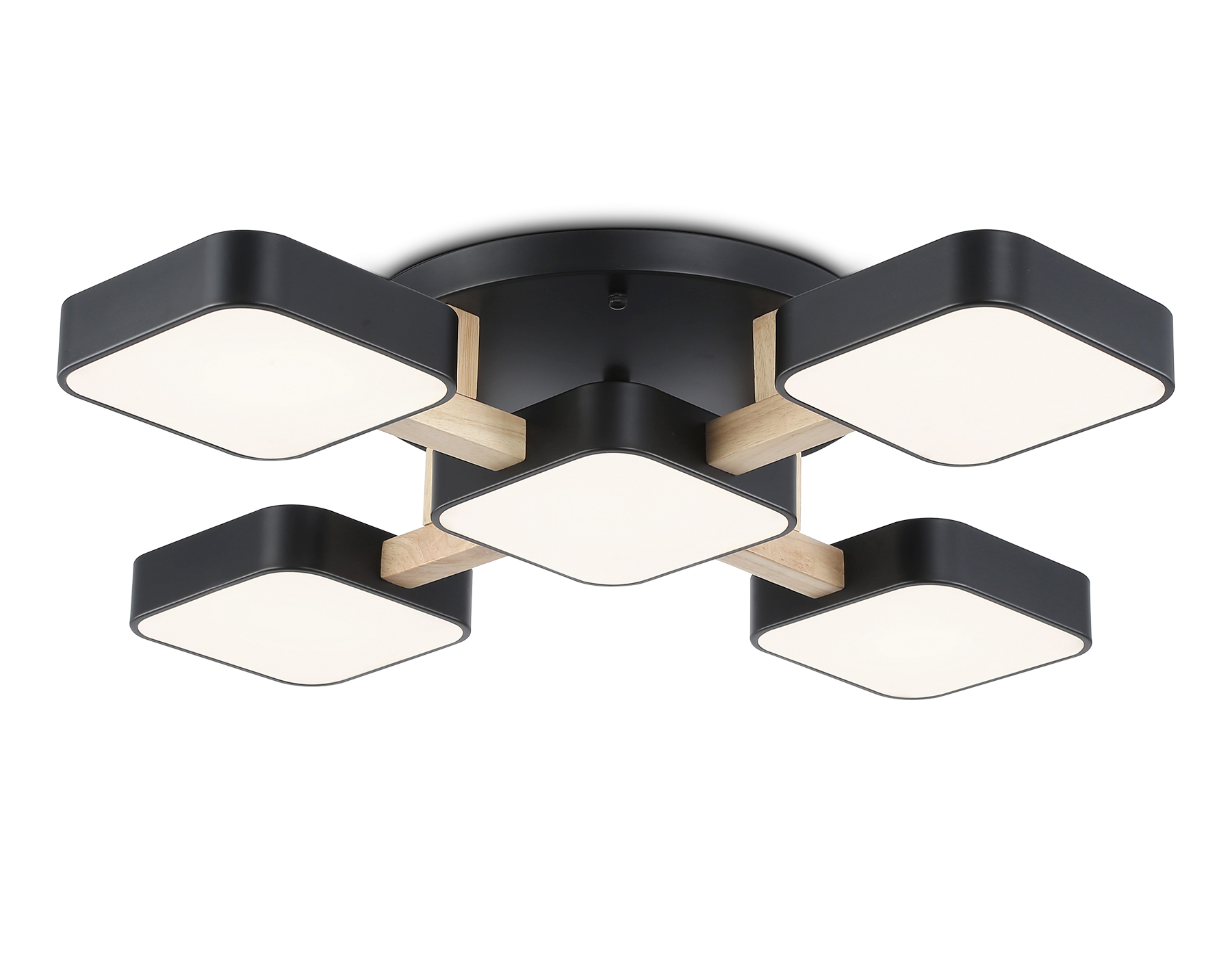 Светильник светодиодный подвесной FL4883/5 BK/WD черный/дерево 90W 3000-6000K 675*675*110 (без ПДУ)