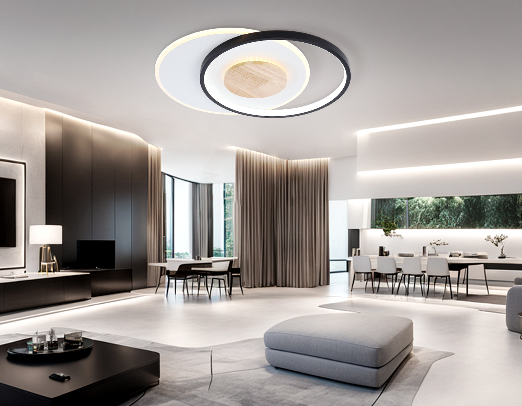 Светильник светодиодный потолочный FL4789 WH/BK/WD белый/черный/дерево 54W 3000-6000K 460*365*45 (без ПДУ)
