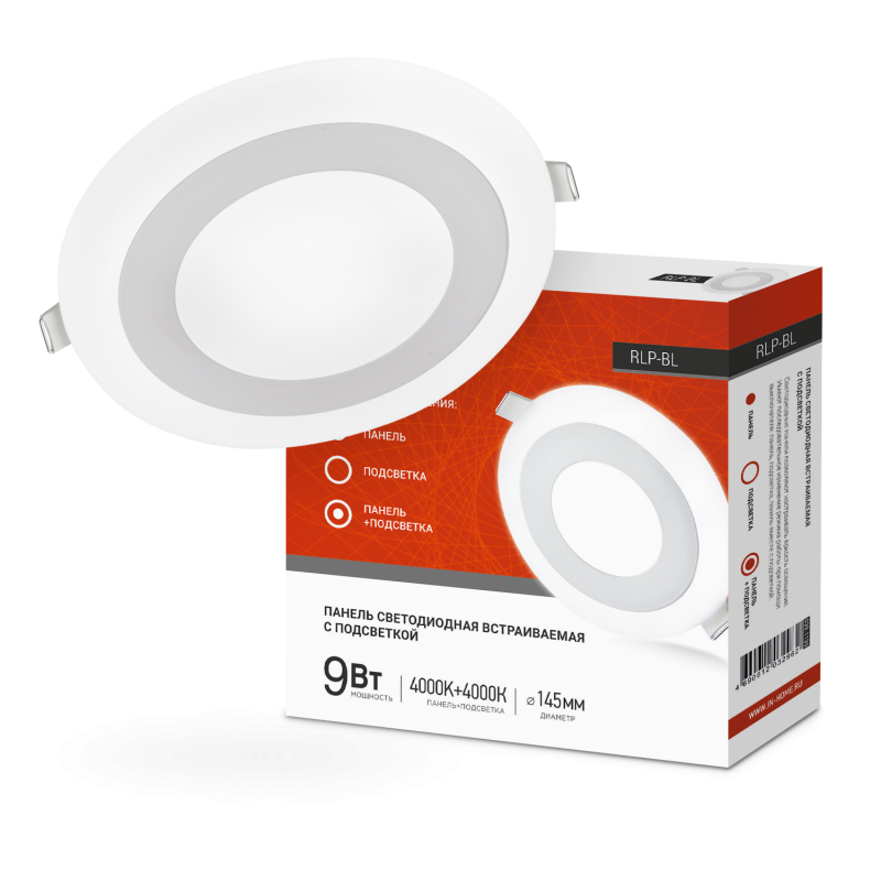 Светильник светодиодный RLP-BL 9Вт 4000К IP20 540лм 230В 145мм круглый встраив. с подсветкой панель бел. IN HOME 4690612032962