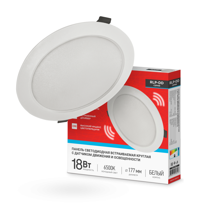 Светильник светодиодный RLP-DD 18Вт 6500К IP40 1440лм 230В 177мм датчик движения круглый встраив. панель бел. IN HOME 4690612058443