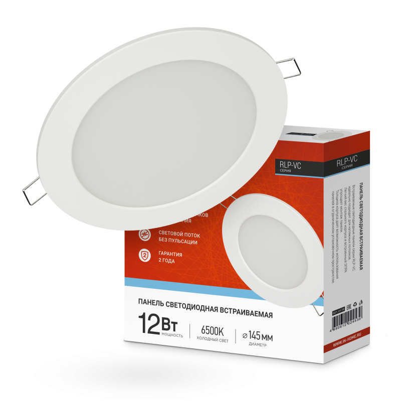 Светильник светодиодный RLP-VC 12Вт 6500К IP40 960лм 230В 145мм круглый встраив. панель бел. IN HOME 4690612024530