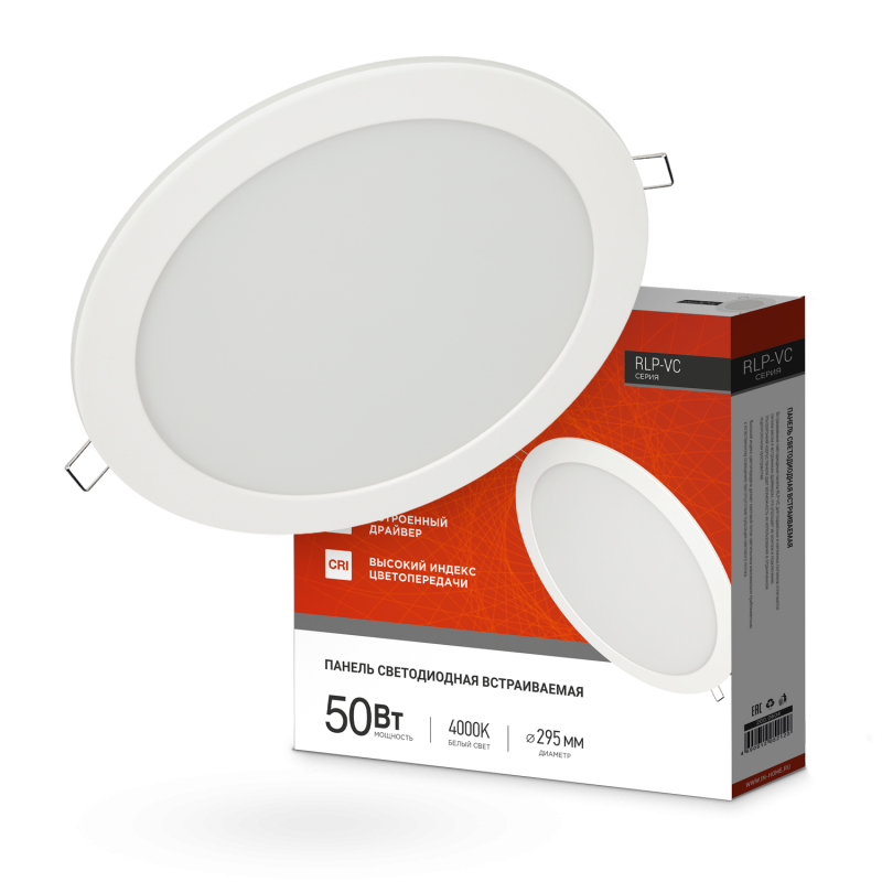 Светильник светодиодный RLP-VC 50Вт 4000К IP40 4000лм 230В 295мм круглый встраив. панель бел. IN HOME 4690612052120