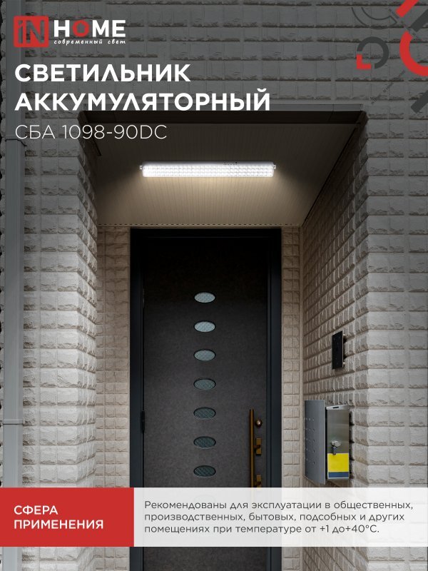 Светильник светодиодный СБА 1098-90DC 90 LED 2.2А.ч lithium battery DC аварийный IN HOME 4690612029535