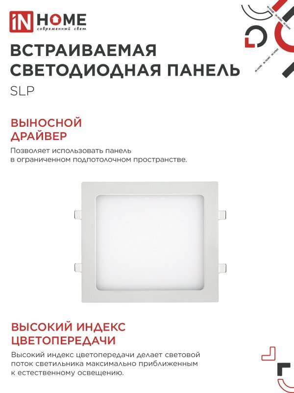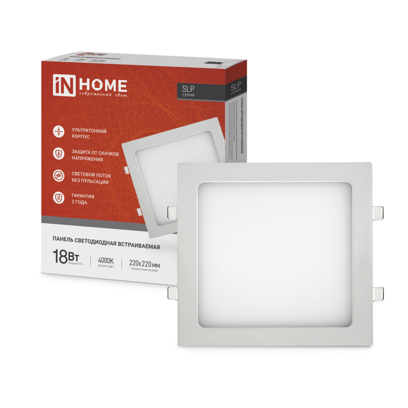 Светильник светодиодный SLP 18Вт 4000К IP40 1260лм 230В 220мм квадрат встраив. панель бел. IN HOME 4690612007175
