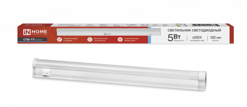 Светильник светодиодный СПБ-Т5 5Вт 6500К 450лм 230В 300мм IN HOME 4690612012223