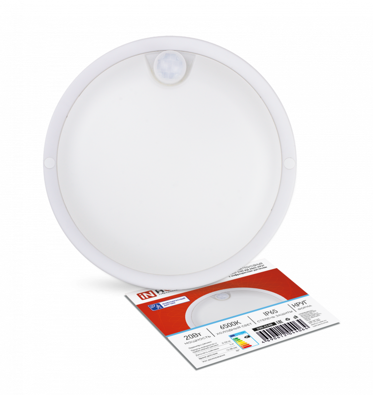 Светильник светодиодный СПП ИД-2065-КРУГ 20Вт 6500К IP65 1800лм 155мм герметичный с инфракрасным датчиком IN HOME 4690612044064
