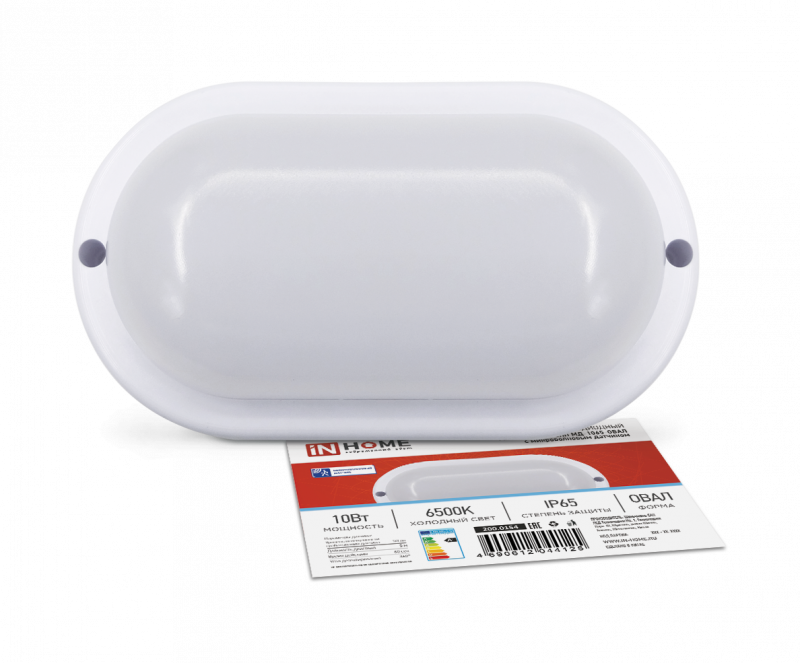 Светильник светодиодный СПП МД-1065-ОВАЛ 10Вт 6500К IP65 900лм 160х88мм герметичный с микроволновым датчиком IN HOME 4690612044125
